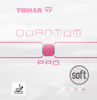 TIBHAR Quantum X Pro Soft PINK - это новая версия с мягкой губкой 42,5º, которая дает большее ощущение стабильности и контроля в игре, с улучшенным соотношением «вращение / траектория мяча», траектория мяча лучше и легче контроль.
